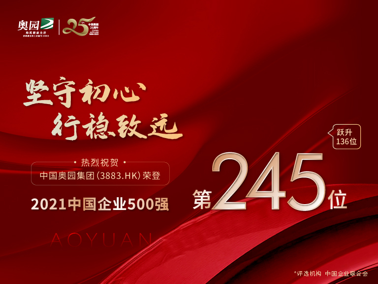 勁升136位 中國奧園榮登2021中國企業(yè)500強第245名