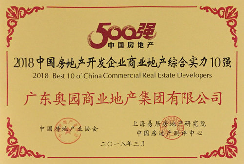 奧園商業(yè)地產(chǎn)集團(tuán)榮膺“中國(guó)商業(yè)地產(chǎn)10強(qiáng)”等多項(xiàng)殊榮