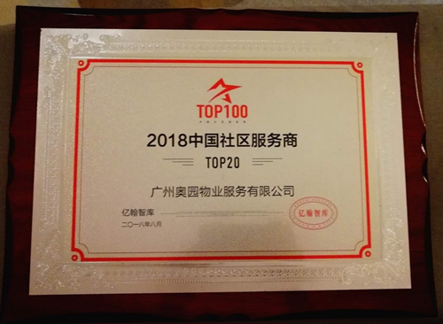 奧園榮獲“2018年中國社區(qū)服務商TOP20”等獎項