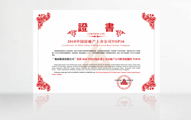 再獲殊榮!奧園榮獲“2018中國大陸在港上市房地產(chǎn)公司財務(wù)穩(wěn)健性TOP10”等多個獎項