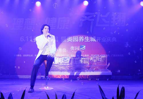 (2011年6月11日——廣州)中國奧園地產集團在南沙奧園舉辦《理想·健康·齊飛翔——費翔南沙獻唱會》,慶賀旗下奧園養(yǎng)生城開業(yè),以“健康”與“理想”品牌互動的形式答謝奧園業(yè)主。國際巨星費翔攜鄭健鵬、胡芳芳等著名歌手激情獻唱,完美演繹情歌經典。